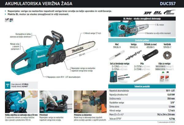 MAKITA Akumulatorska verižna žaga DUC357Z
