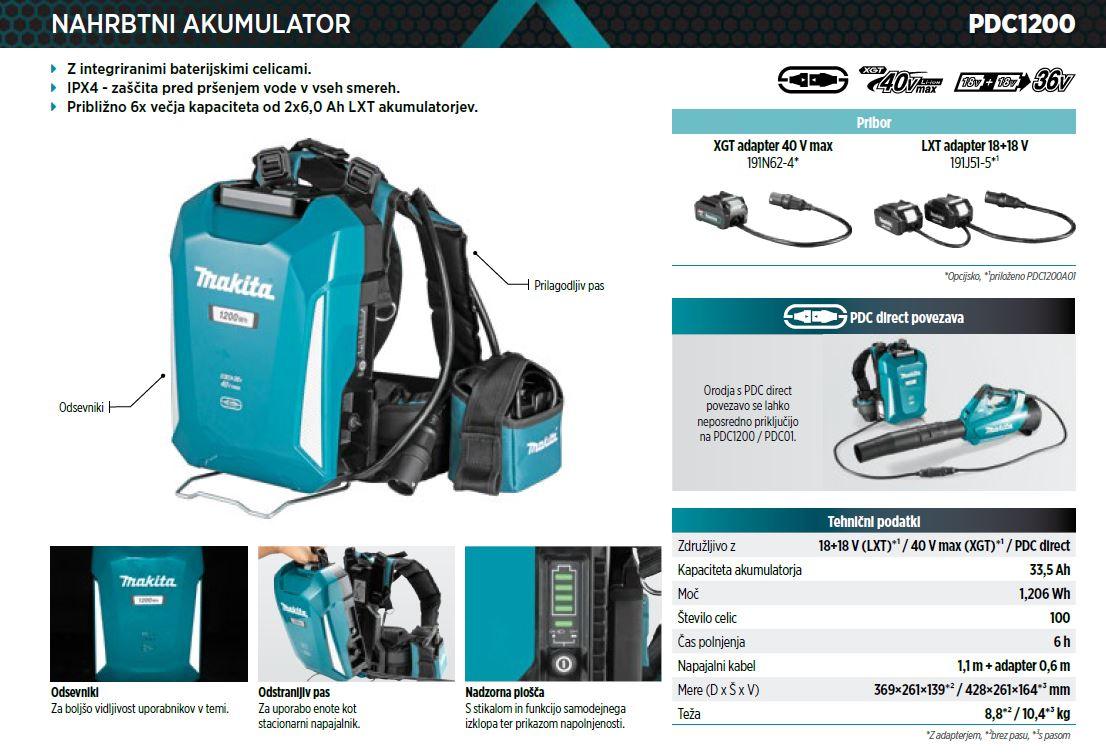 Domov / AKUMULATORSKO ORODJE / MAKITA Nahrbtni akumulator Li-ion 36V/ 33,5Ah PDC1200A01